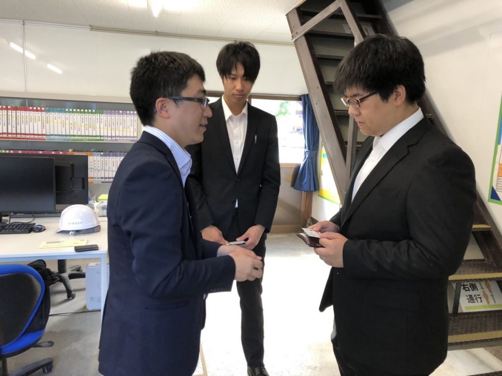 まずは、名刺交換の練習をして出発します。